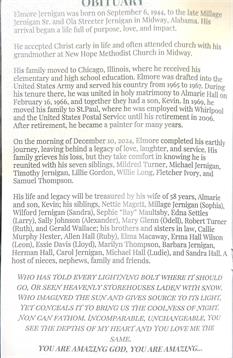 The world bids farewell to Elmore Jernigan (Saint Paul, Minnesota), departing on December 10, 2024 at the age of 80. Elmore leaves behind memories cherished by the community. Family and friends can send flowers and/or light a cand Read Obituary